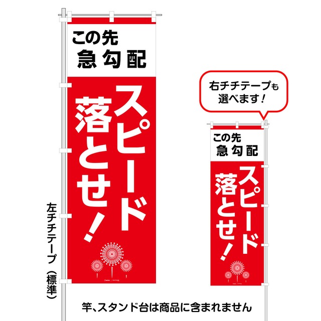 「この先急カーブ スピード落とせ!」オリジナルのぼり旗 FG-00-06Q