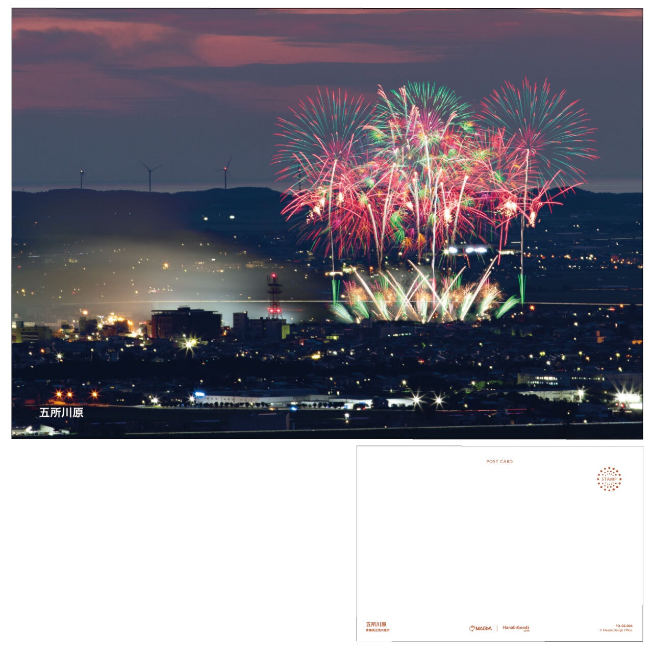 青森県五所川原市で行われた花火大会のポストカードです。