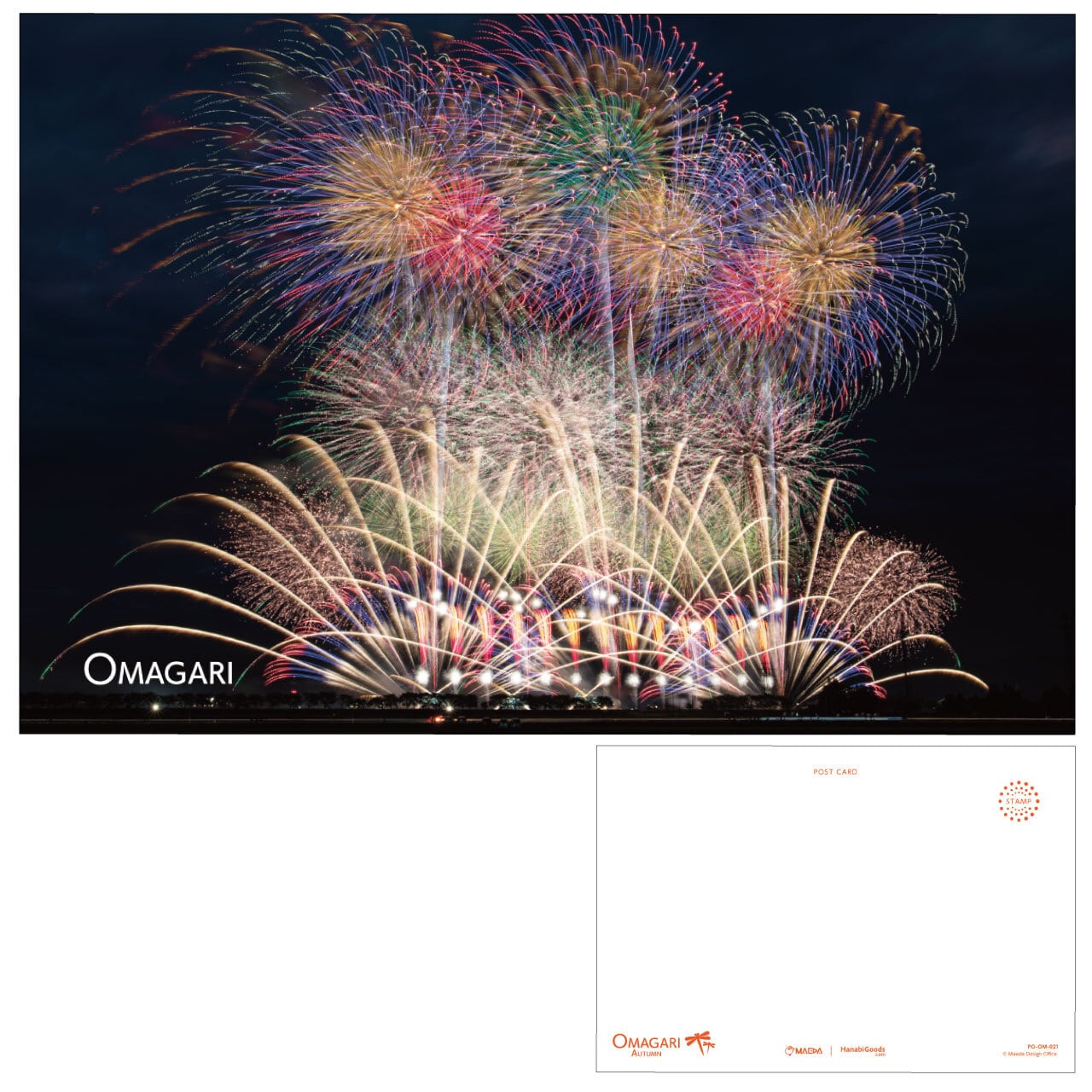 秋田県大仙市大曲で打ち上げられた秋の花火のポストカードです。