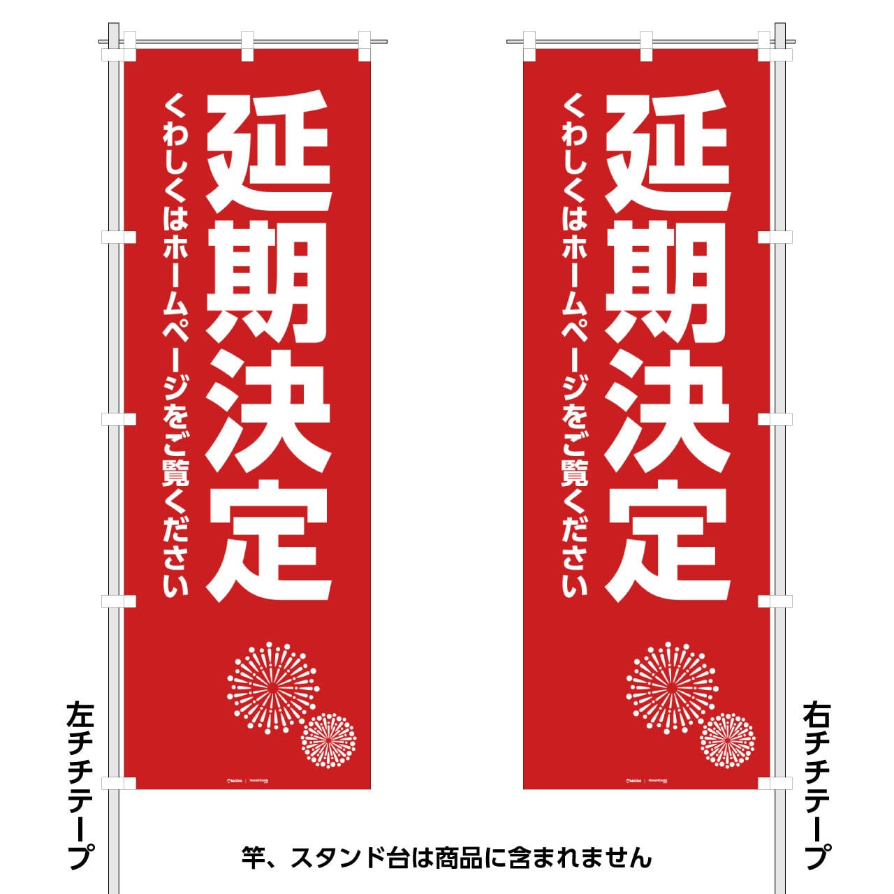 【受注生産】「延期決定:くわしくはホームページをご覧ください」オリジナルのぼり旗 FG-90-23D