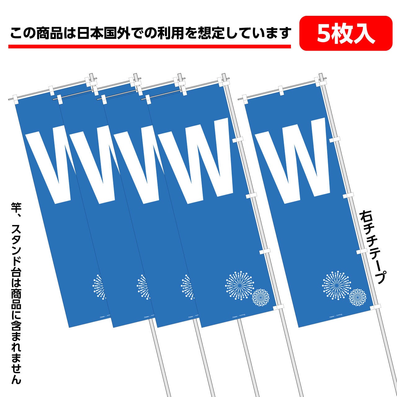 【5枚入】「W」オリジナルのぼり旗 FG-80-15W-5PACK