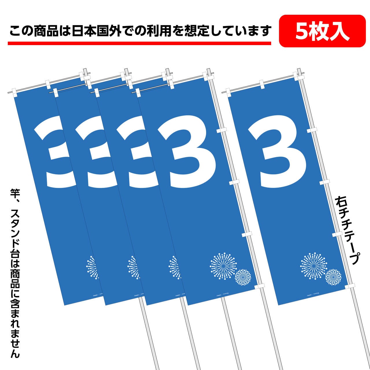 【5枚入】「3」オリジナルのぼり旗 FG-80-153-5PACK