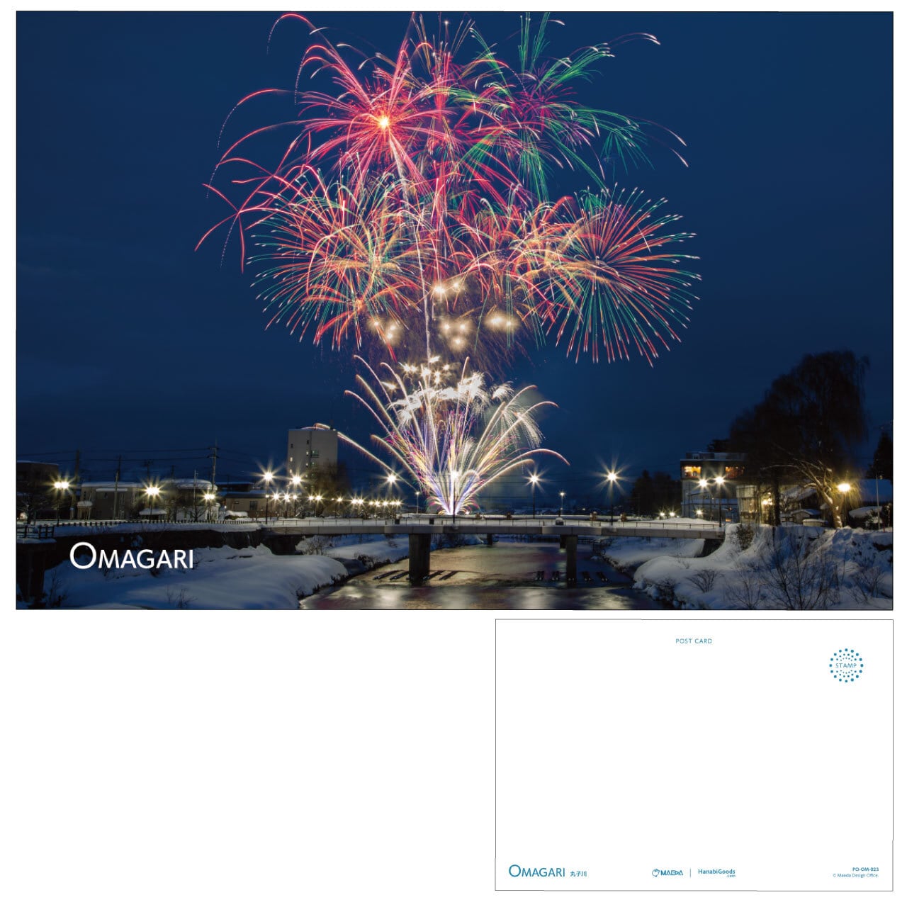 大曲市街で打ち上げられた花火のポストカードです。